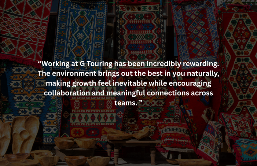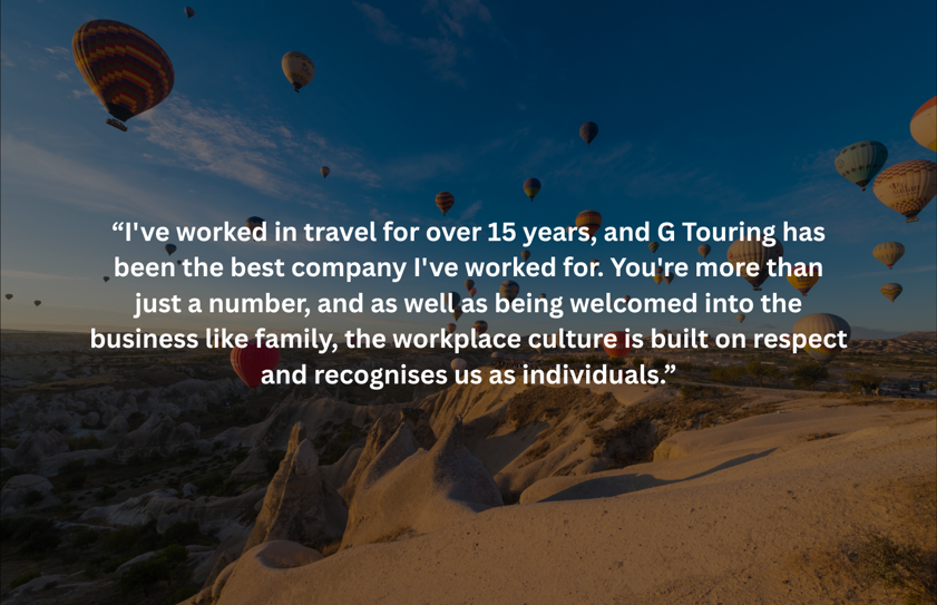 If you’re looking for a place where your work is valued, your voice is heard, and your passion for travel can thrive.... G Touring is the place for you! Our team live and breathe our values.. take a look at some of their comments..